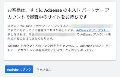 1 お客様は、すでにAdSenseのホストパートナーアカウントで審査中のサイトをお持ちです。